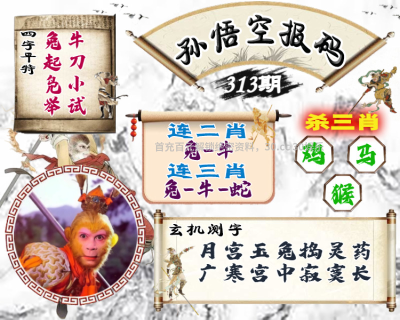 | 312期:复式连肖 复式连肖:[马兔猪]-[牛羊猴]-[狗鼠蛇] |